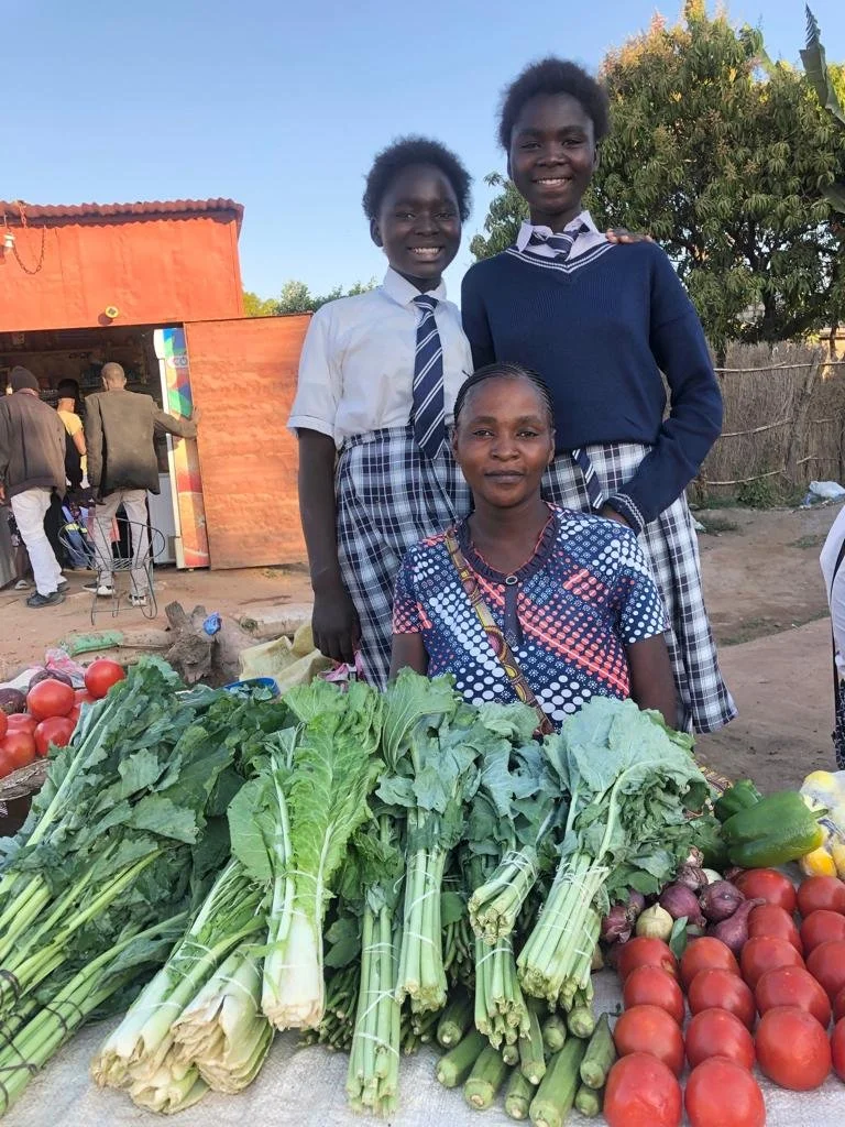 Gracious and her daughters, Ruth and Diana, show the beautiful vegetables sold to the local community.